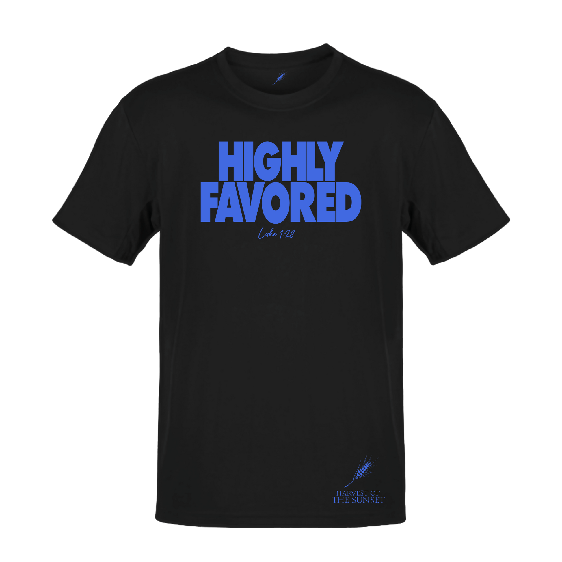 Faith-inspired design with “Highly Favored” bold lettering